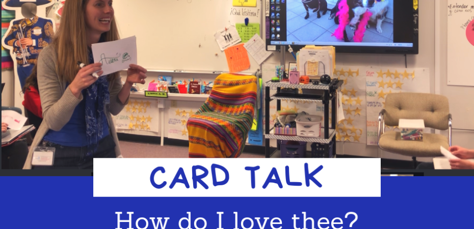 […] shows High school Level 1 https://www.youtube.com/watch?v=fbyuem8Nxpo Blog Post: https://senorachase.com/2019/02/11/card-talk-how-do-i-love-thee-let-me-count-the-ways/ Book Talk– Using Comprehensible Input to describe the plots of FVR books, to pique […]