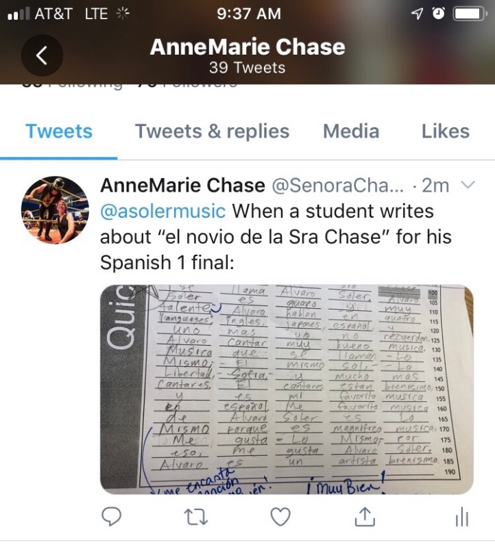 And speaking of grading them, they’re so fun to read, because everyone wrote about something different (so they’re not boring to grade!) Here’s the super simple rubric I’m using. These kids are cracking me up…especially this one, which I just HAD to tweet to my “novio”: