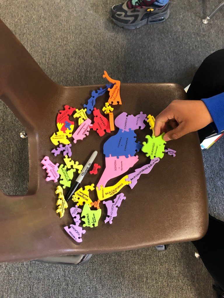 There’s one exception to the reading/ puzzle routine. ONE lucky kiddo gets to work on the Foam Mexico Puzzle, that I bought 10 million years ago when I was doing my Masters in Guanajuato. That kid gets to work on it until it is complete, whether it is one class or several, during our Tuesday/Thursday reading time. There’s a printed map in the case to guide them, or they can assemble the puzzle without any help. Students who complete the puzzle get the honor of signing their name on the case, then the puzzle becomes available to the next kid who wants to assemble Mexico. Is that kiddo reading? No, but I’m OK with it. This year, all of my Heritage kiddos’ families came from Mexico, and in a way I don’t really understand, figuring out the Mexico puzzle feels really important to them. And that’s why it’s important to me, too.