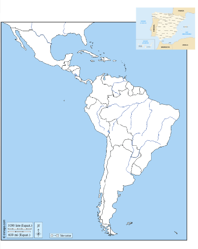 Spanish teachers, print out these maps back to back. Hole punch them, pass them out and you’re ready to go. (If you’re not a Spanish teacher, go ahead and find 2 maps of the regions that speak your target language. You’ll want a simple line map with the countries named and another one that only has the country outlines but no names.)