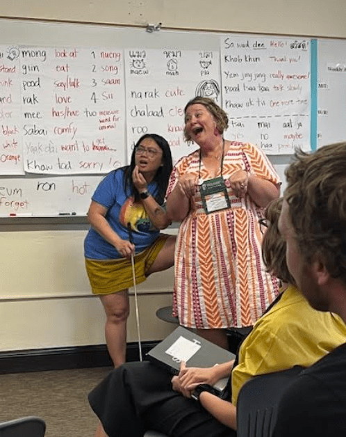 My Thai class, taught by La Sripanawongsa, embodied everything that makes teaching with Comprehensible Input special: laughter, light-heartedness and community. Even though we only spent about 4 hours together total as a class, over the span of 4 days, we acquired an impressive amount of Thai and had fun doing it! All the “students” were language teachers, experiencing a “new” language as if we were novice students.
