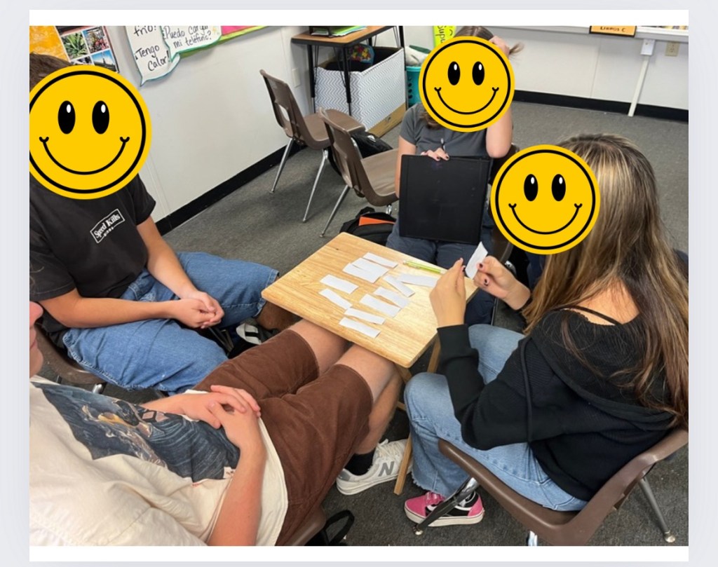 - If she picks another student’s paper and can’t remember a fact or can’t say it in Spanish, she returns the paper and her turn is over😵