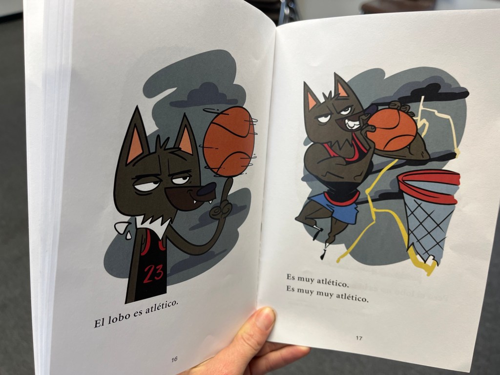 I introduced the book by telling them, “Can you believe you’ve acquired enough Spanish in just three weeks to actually read a real book?!” They met me with disbelief an a few exclamations of “bet”. Then we jumped in. I read it aloud to them, Kindergarten style: showing the pictures, doing the voices, asking lots of questions, all the things that our favorite elementary teacher did back in the day.