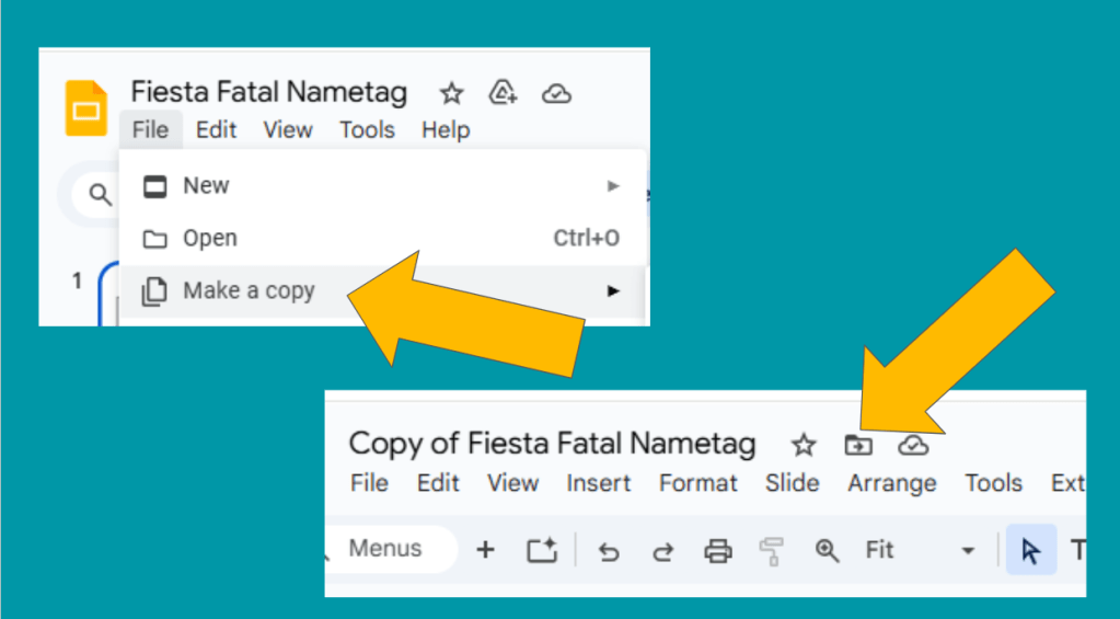 ***And just a reminder, you can always “Make a Copy” if you want to edit the language for your students or if you catch a typo. After you make a copy, be sure to click the little file icon next by the file name. This will allow you to tell Google Drive where to save it, so you can find it again! ***
